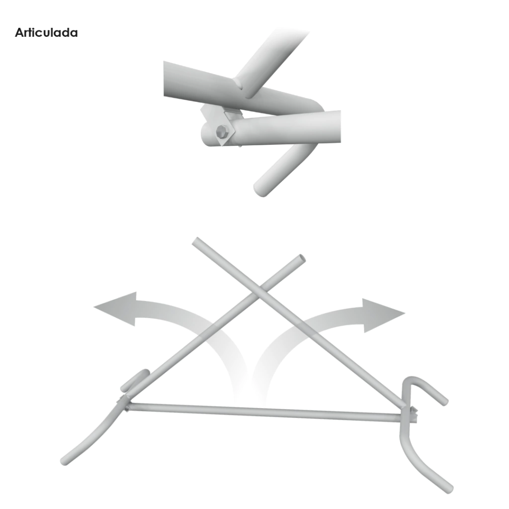 Modo de Uso: A arara é articulada, o que facilita sua montagem sem a necessidade de ferramentas. Sua altura é regulável, variando de 1,52m a 1,97m, proporcionando flexibilidade para diferentes espaços e necessidades de exposição.