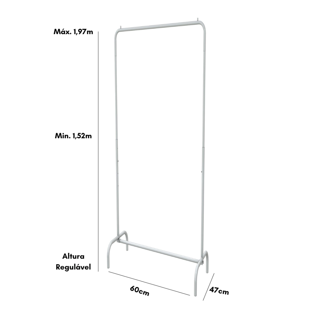 • Medidas: Largura fixa de 0,60cm, altura regulável de 1,52m a 1,97m.