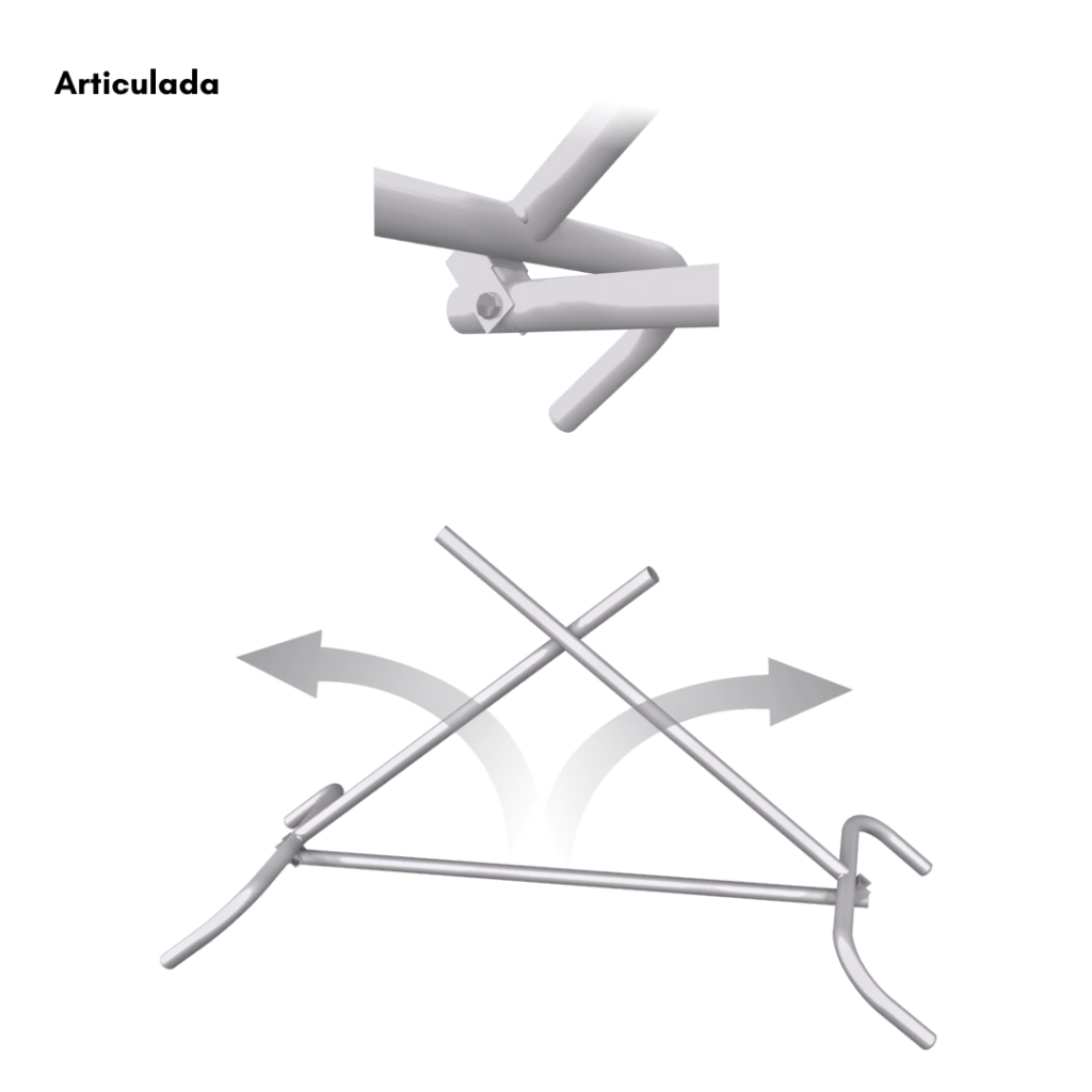 • Modelo Articulado: Facilita a montagem e desmontagem, dispensando o uso de parafusos ou ferramentas.