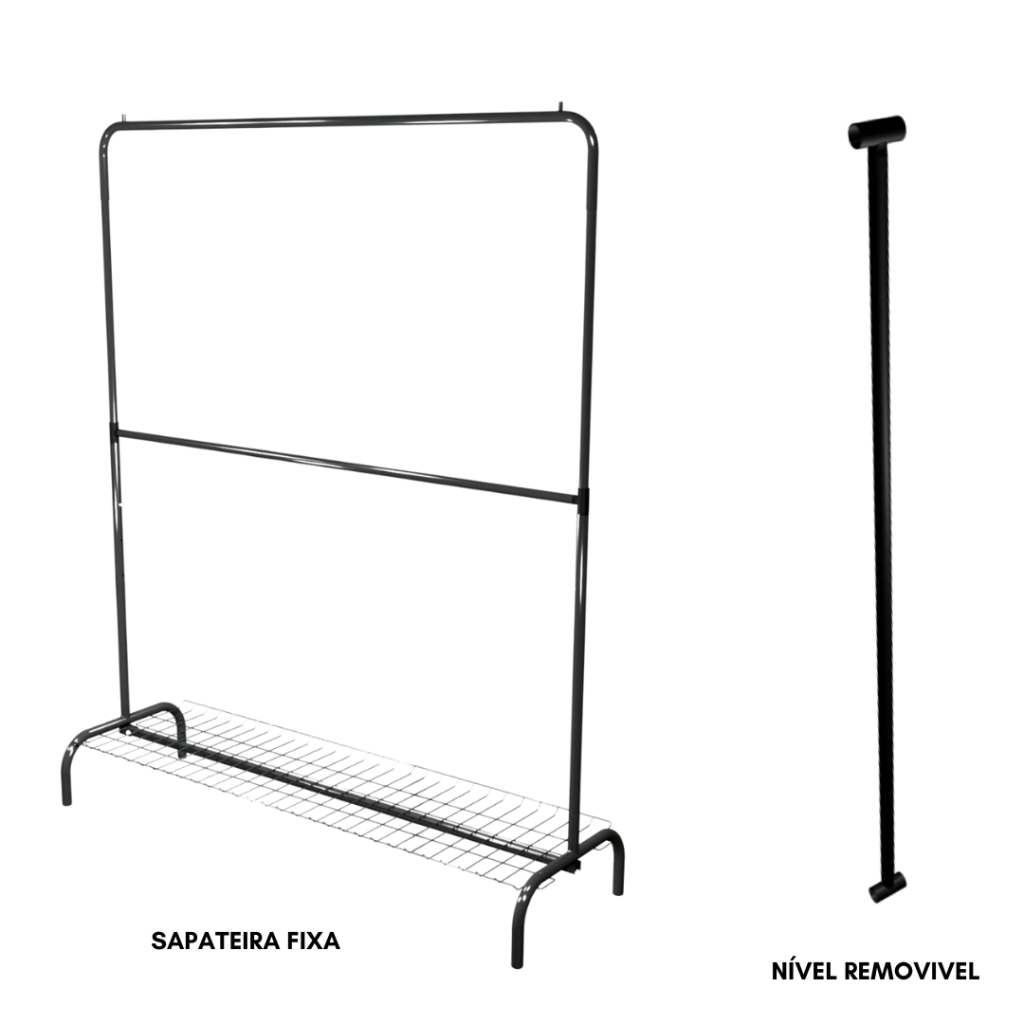A barra central removível proporciona flexibilidade adicional, permitindo que você personalize o espaço conforme a quantidade e o tipo de roupas que deseja expor.