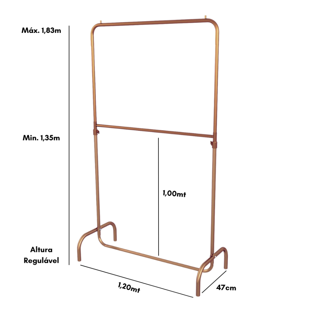 • Durabilidade: Construída em aço de alta qualidade, garante resistência e durabilidade, suportando até 60 kg (30 kg por cabideiro).