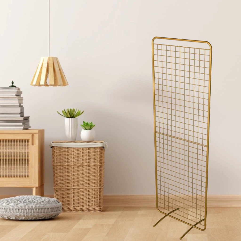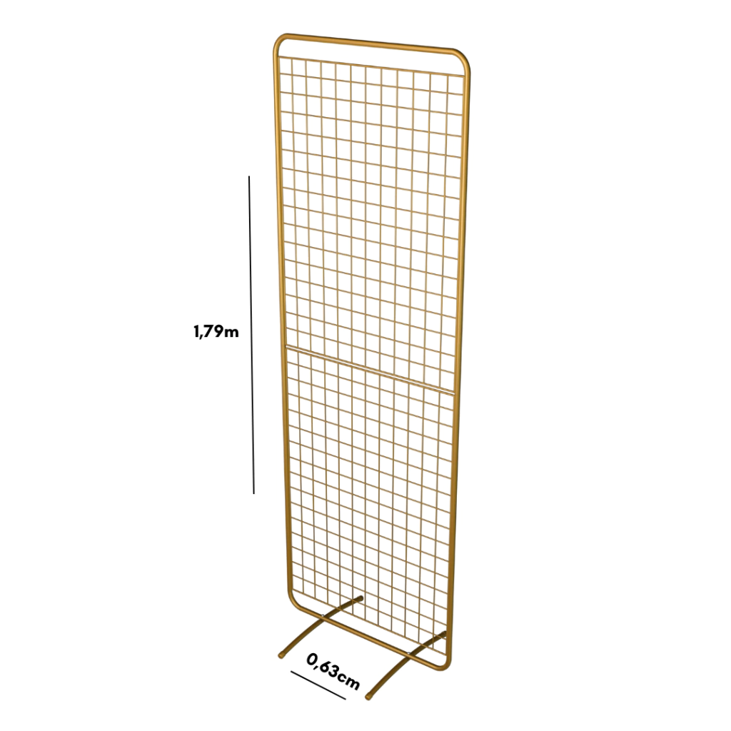 O Biombo de Chão Dourado da Loja das Lojas é a escolha ideal para quem precisa de uma estrutura portátil e versátil para exposições em ambientes internos/externos. Seja para fornecer privacidade, delimitar espaços ou servir como suporte para exibição de informações ou produtos, este biombo é perfeito para feiras, mercados ou eventos públicos.