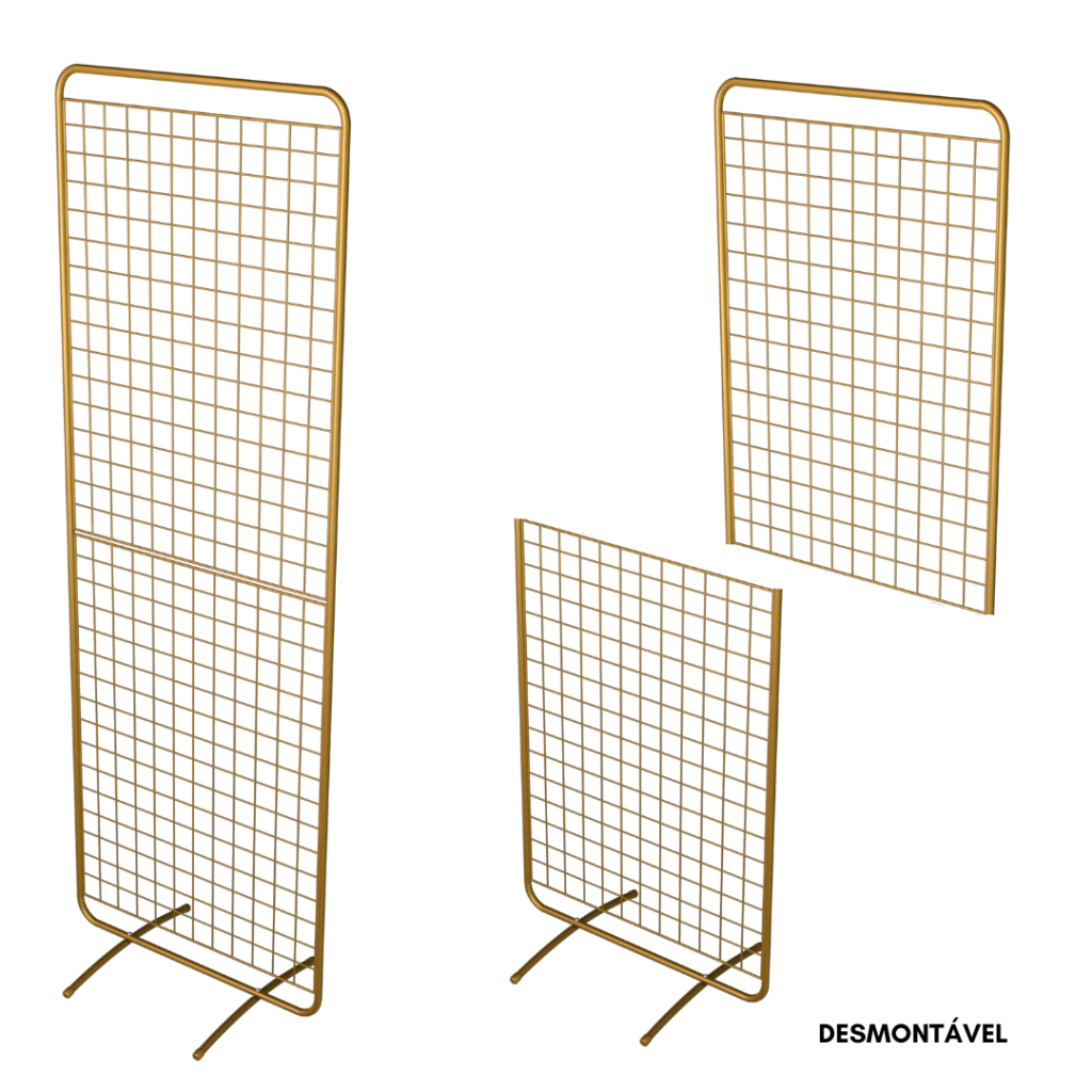 Nosso Biombo de Chão Dourado é projetado com materiais de alta qualidade e uma pintura eletrostática que garante maior resistência e longevidade. Confie na Loja das Lojas para suas necessidades de exposição e promoção em diversos tipos de ambientes .