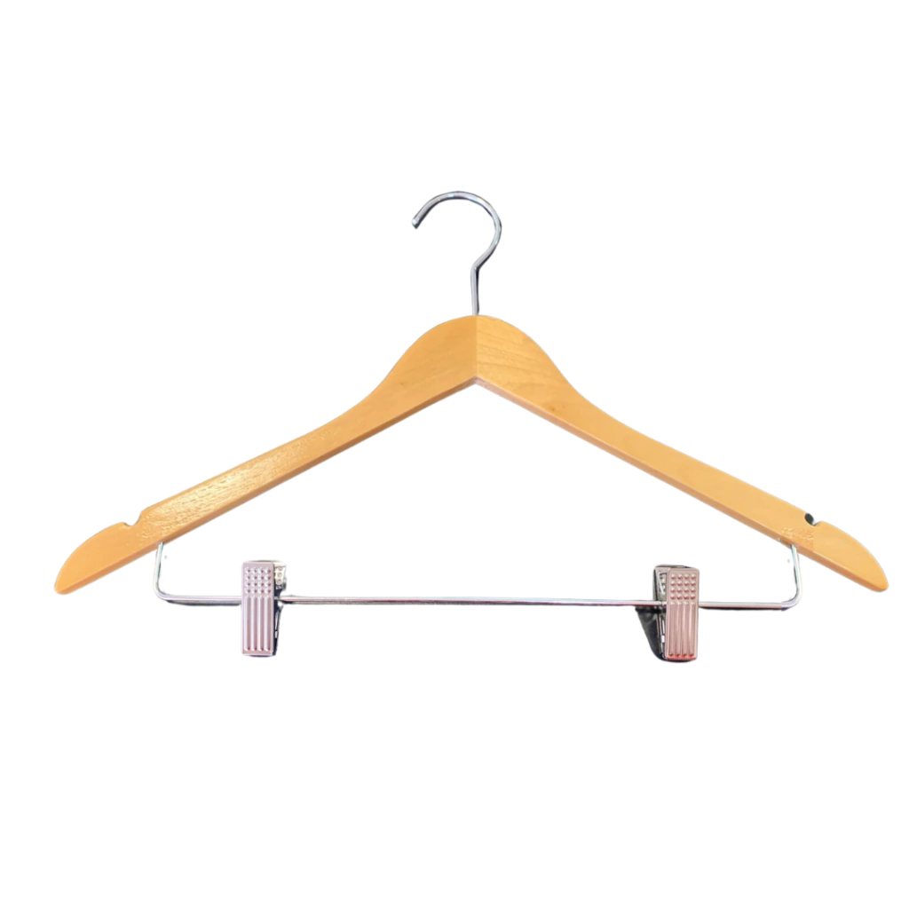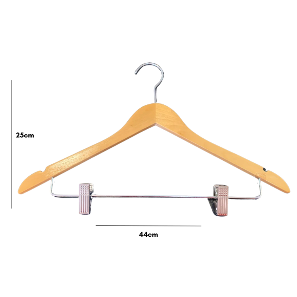 O Cabide de Madeira c/Presilhas da Loja das Lojas é a escolha perfeita para quem busca sofisticação e praticidade na organização de roupas. Feito com madeira de alta qualidade e presilhas de metal robusto, este cabide é ideal para pendurar roupas finas e delicadas, como vestidos de noiva, ternos ,saias , calças e peças de alta costura. Suas medidas de 44cm de largura por 25cm de altura garantem um suporte adequado, evitando deformações nas roupas.