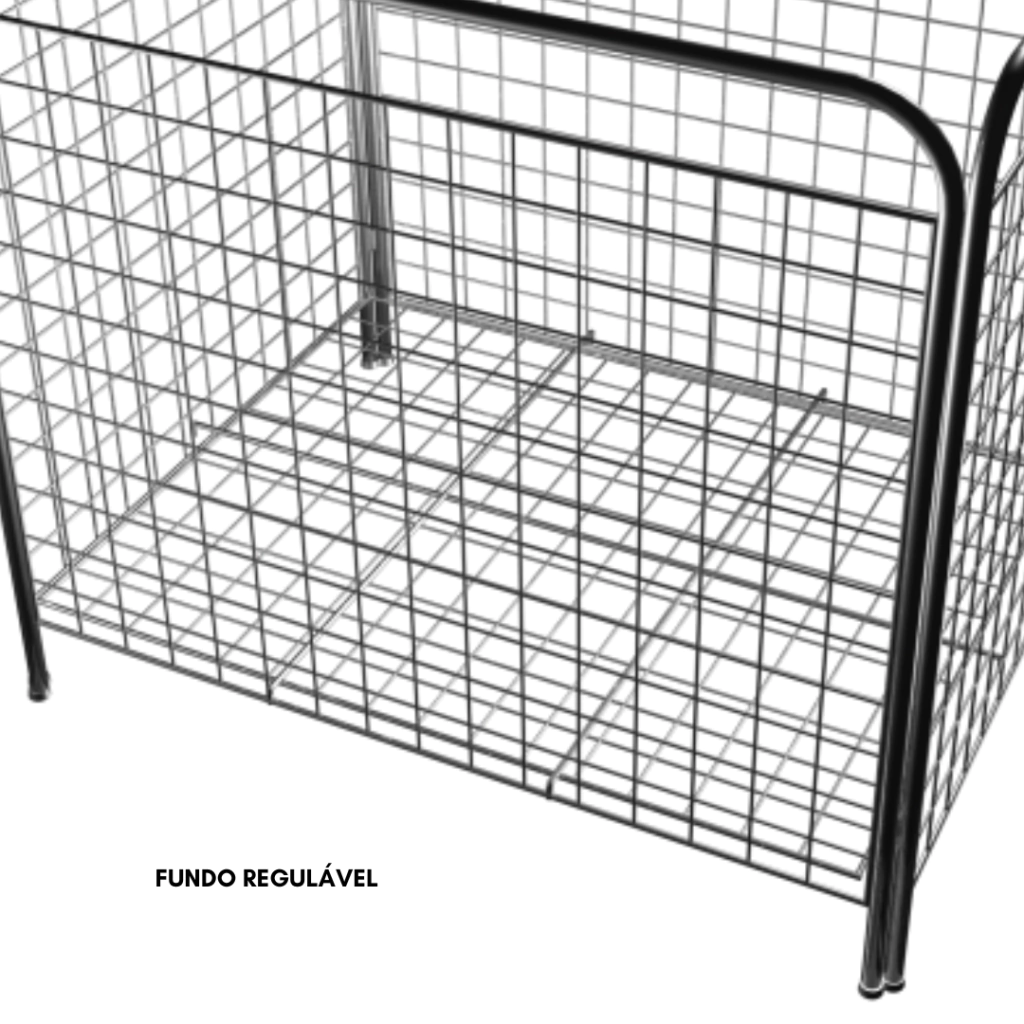 • Ajustabilidade: A grade do fundo com regulagem de altura permite personalizar o cesto de acordo com o tamanho dos itens expostos.