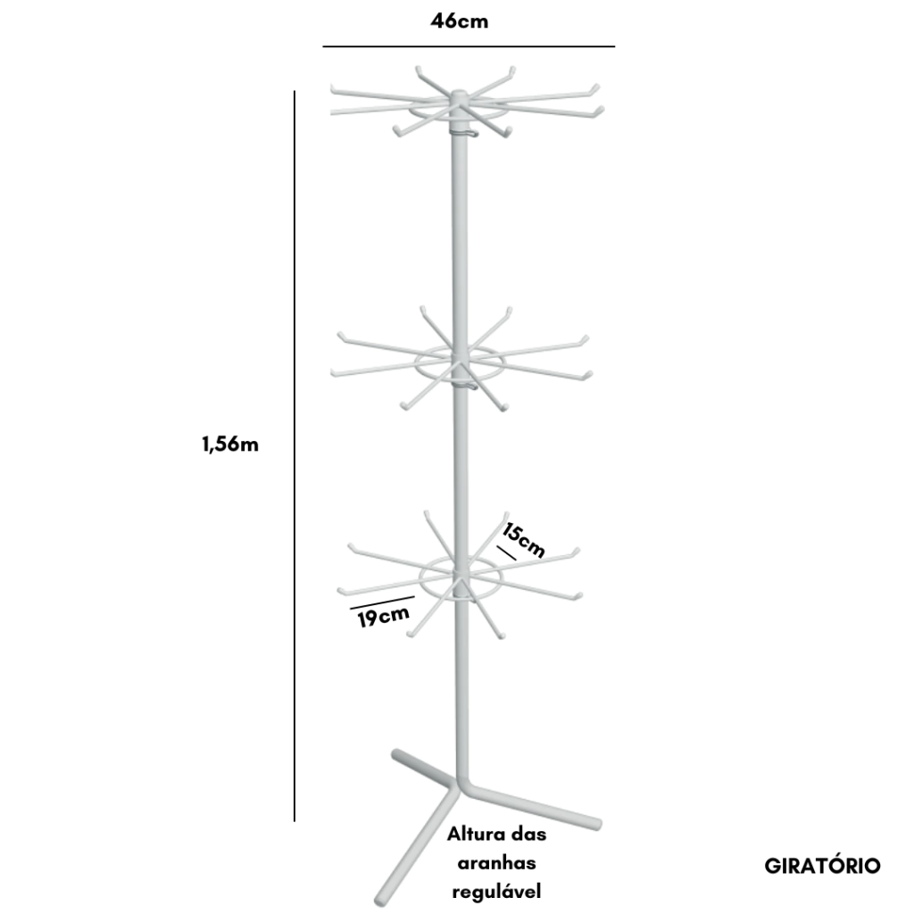 Modo de Uso: Basta posicionar o meieiro de chão em um local estratégico de sua loja e ajustar as aranhas conforme a necessidade. Com suas aranhas reguláveis em altura, você pode personalizar a exposição de acordo com o tamanho dos produtos, garantindo visibilidade máxima e fácil acesso para os clientes.