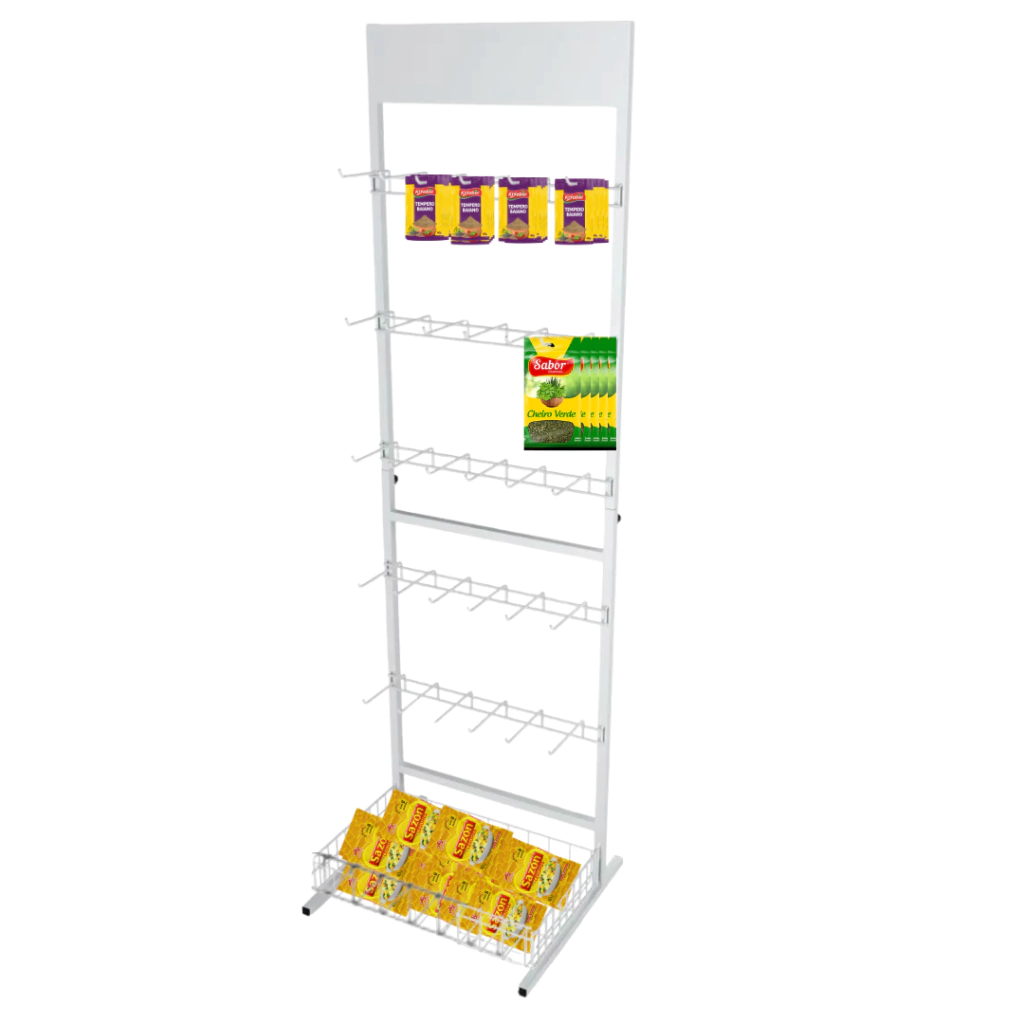 A Gancheira de Chão Branca da Loja das Lojas é a solução ideal para otimizar a exposição de produtos encartelados em seu estabelecimento. Com um design funcional e robusto, este expositor oferece um espaço organizado e atraente para uma grande variedade de itens, como salgadinhos, temperos, acessórios e outros produtos de alta rotatividade.