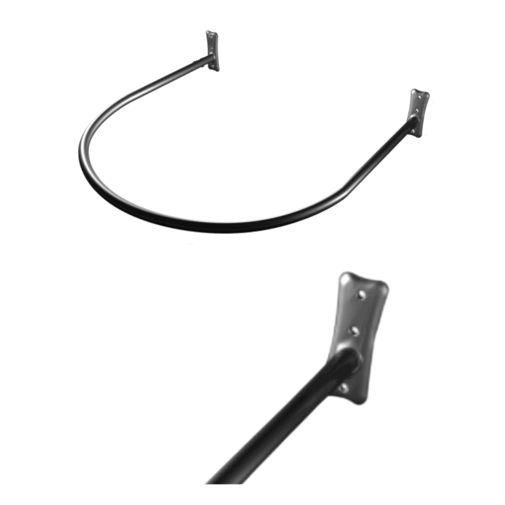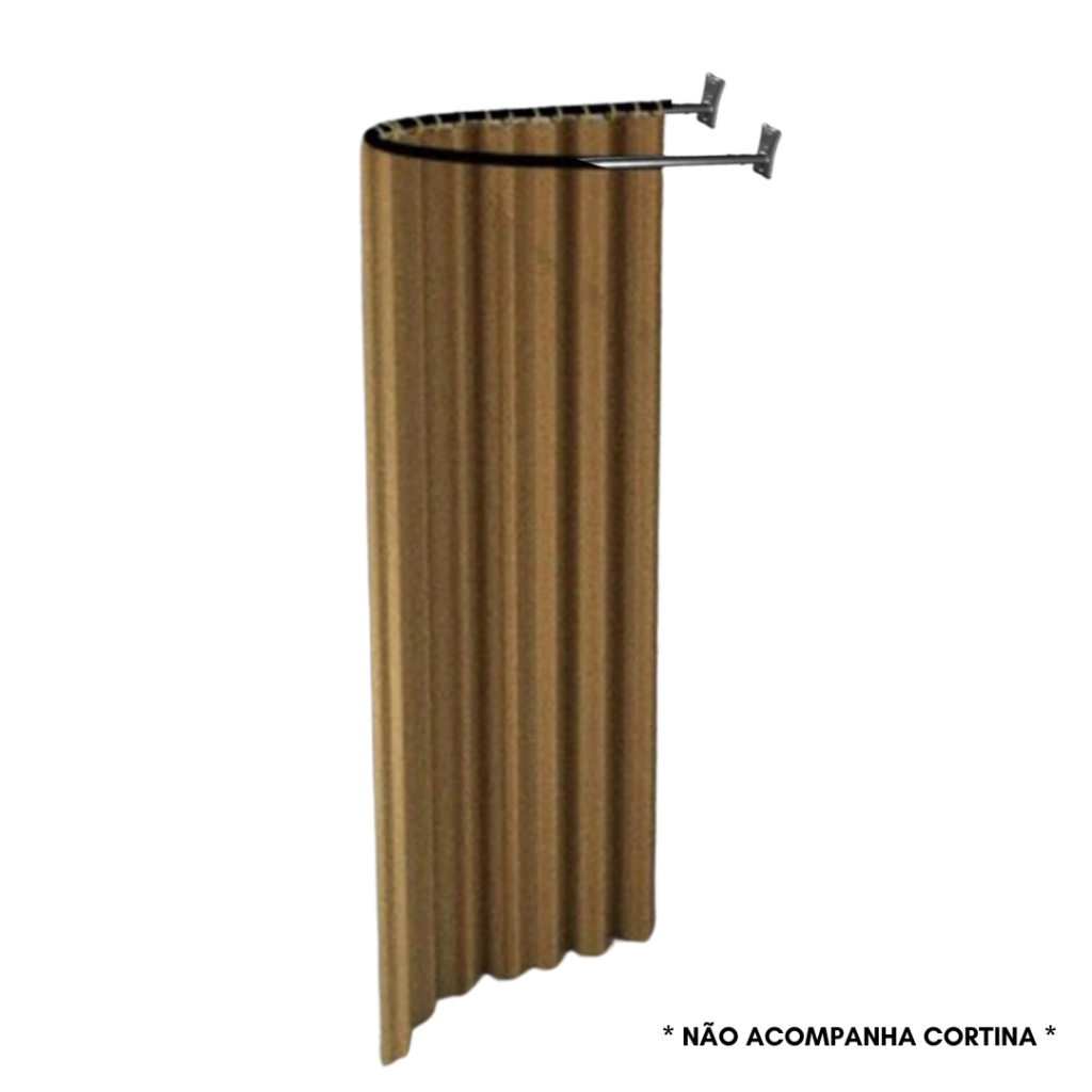 Modo de Uso: Fácil de instalar, o provador em formato de arco é fixado diretamente na parede, proporcionando um espaço confortável de 0,90m x 0,90m para que os clientes possam experimentar roupas com total comodidade. O produto foi desenvolvido para o uso com cortinas de ganchos tipo pera (não inclusas), o que facilita a adaptação ao estilo da sua loja.