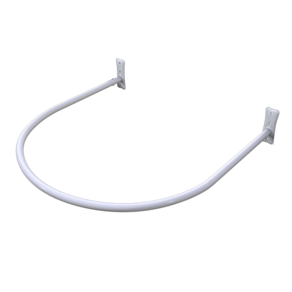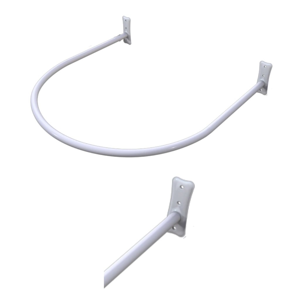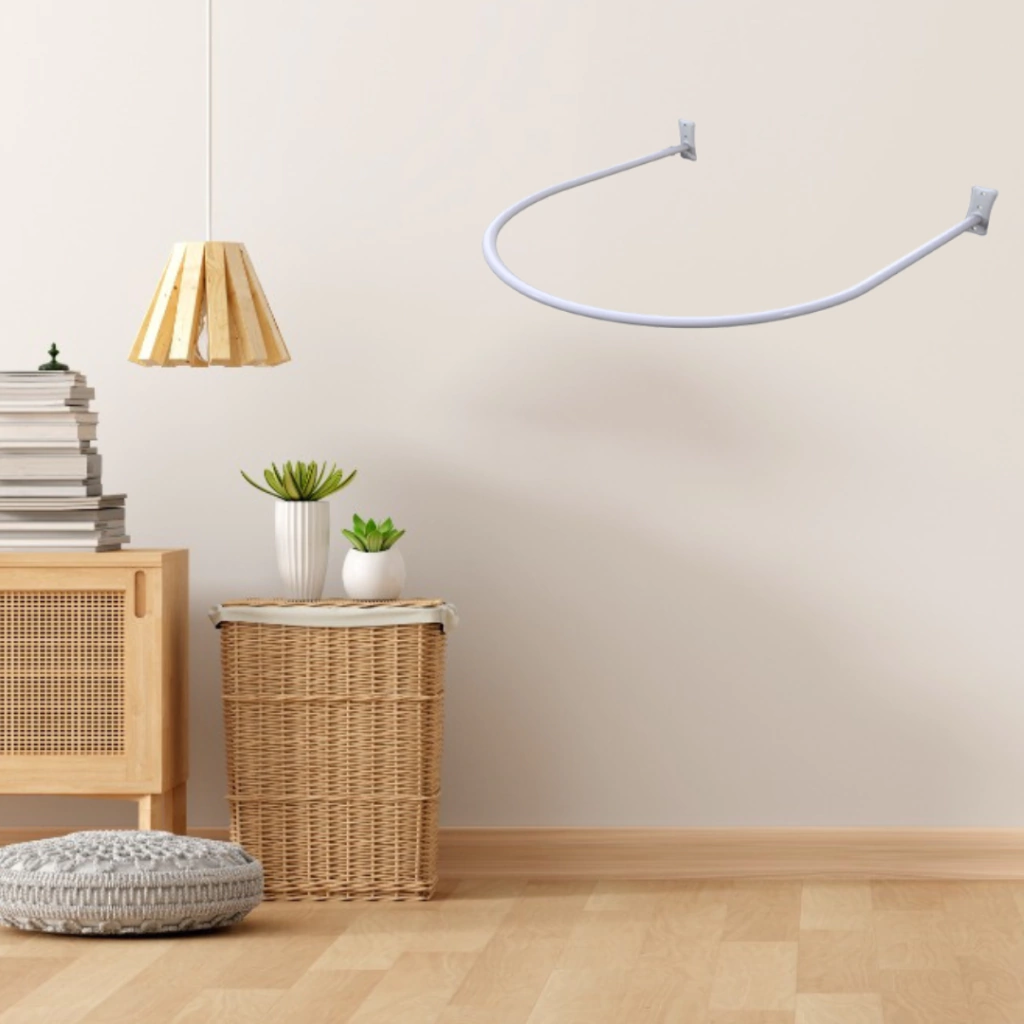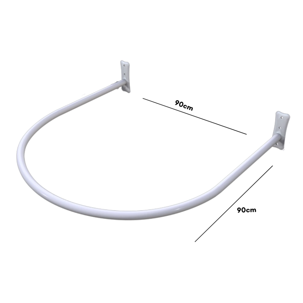 Modo de Uso: Fácil de instalar, o provador em formato de arco é fixado diretamente na parede, proporcionando um espaço confortável de 0,90m x 0,90m para que os clientes possam experimentar roupas com total comodidade. O produto foi desenvolvido para o uso com cortinas de ganchos tipo pera (não inclusas), o que facilita a adaptação ao estilo da sua loja.